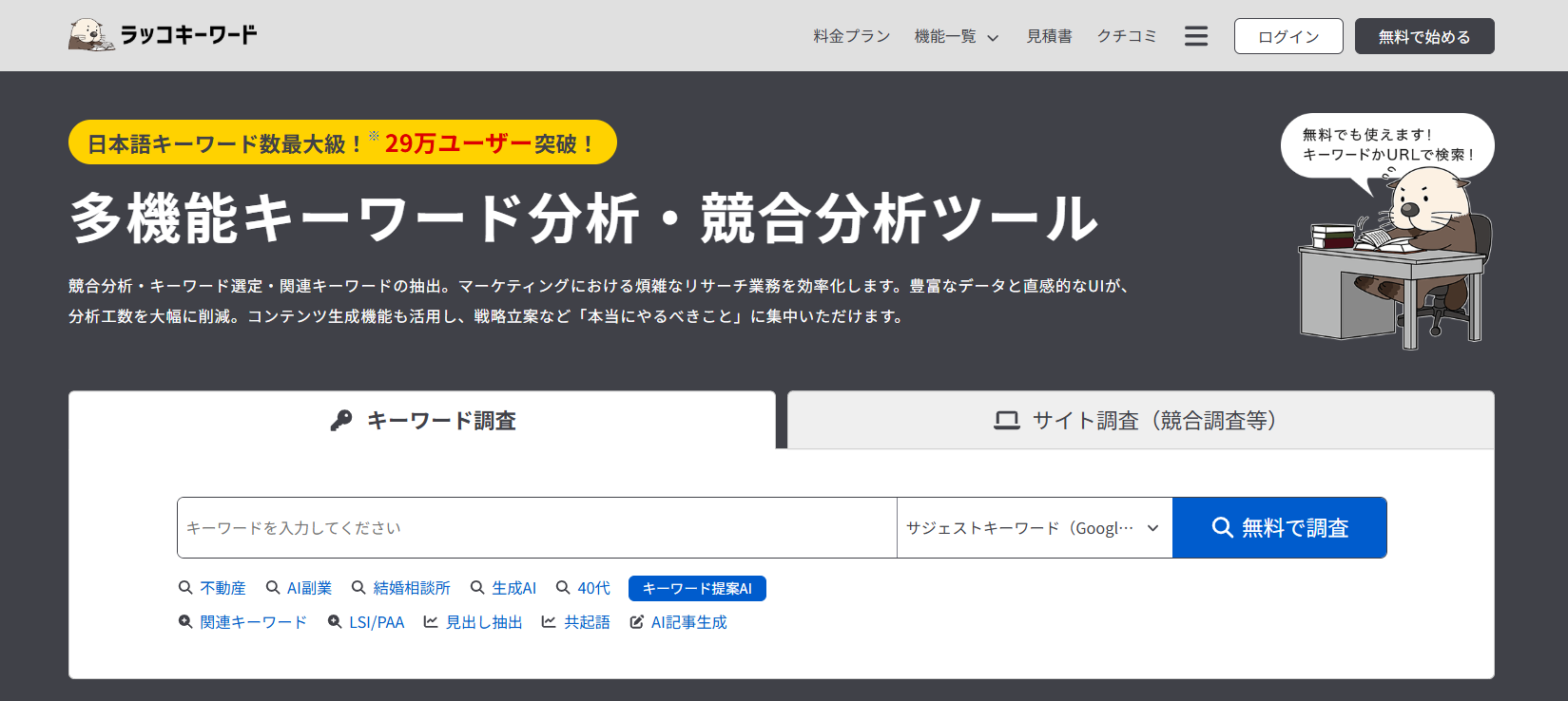『ラッコキーワード』記事ネタやロングテールを探したい場合におすすめ